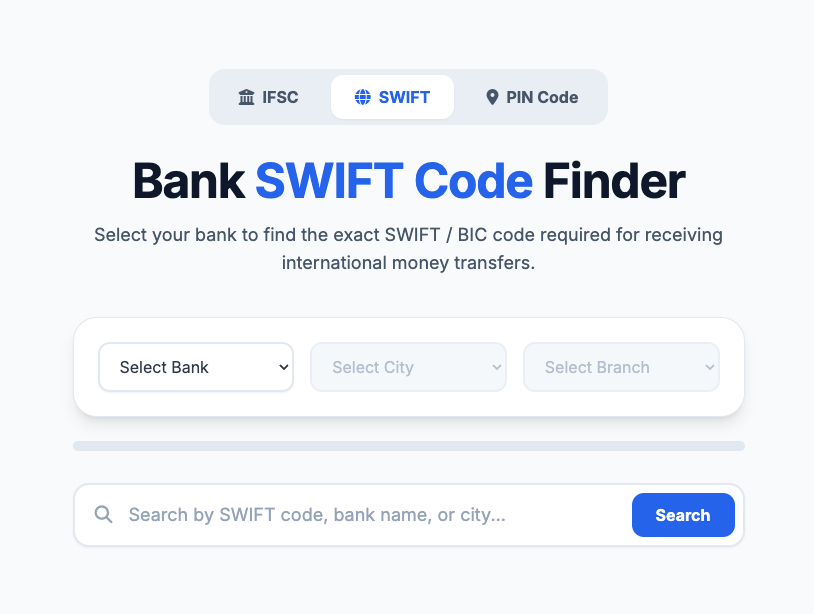 Indian Bank IFSC Code, Swift Code, PIN Code PHP Script is a powerful and user-friendly PHP-based solution designed to provide instant access to Indian bank details and postal information. It allows users to search and find IFSC codes, SWIFT/BIC codes, and PIN codes accurately through a clean and fast interface.